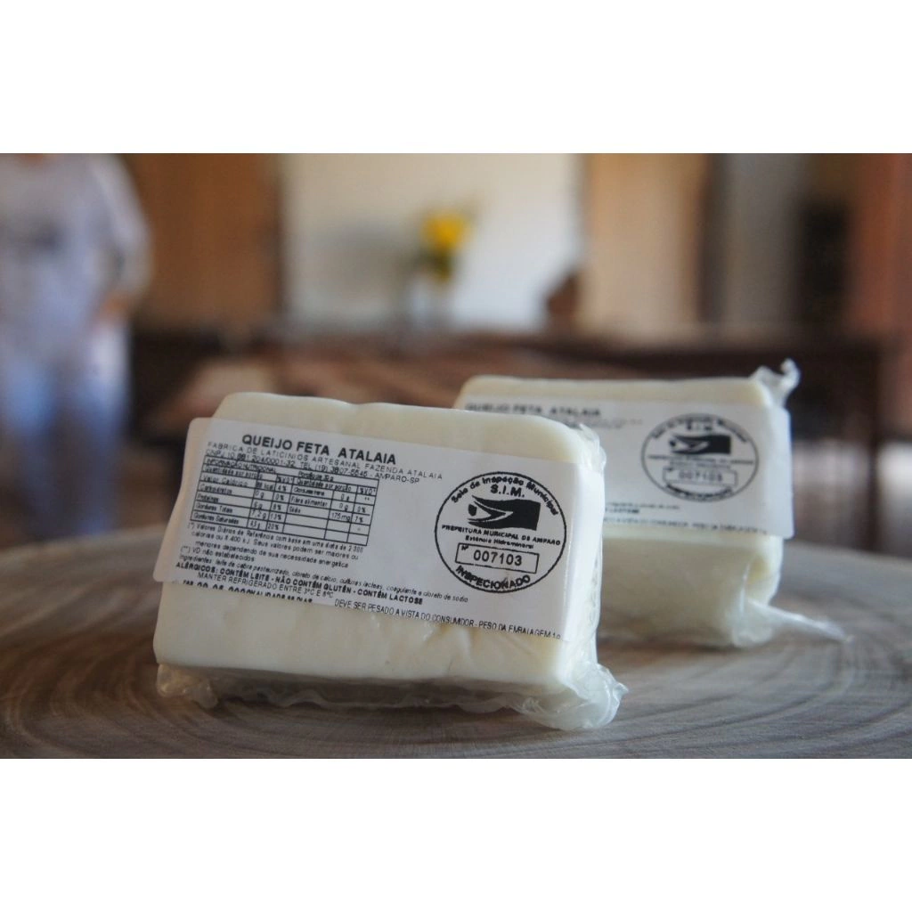 Quebrar o queijo em porções médias e utilizar no preparo de uma salada grega.
